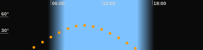 | Höchster Stand (Kulmination) | 09:54 Uhr (h = 44,5°) |