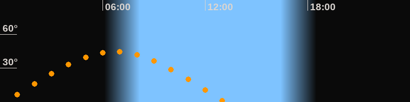 | Höchster Stand (Kulmination) | 06:43 Uhr (h = 44,5°) |