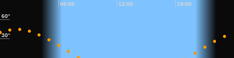| Aufgang | 19:09 Uhr im Osten (αAz = 81°) |