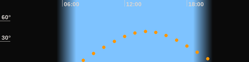 | Höchster Stand (Kulmination) | 14:06 Uhr (h = 44,5°) |