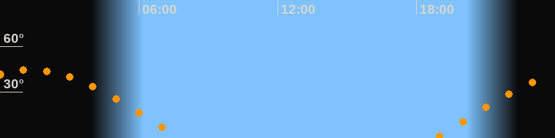 | Aufgang | 18:47 Uhr im Osten (αAz = 81°) |
