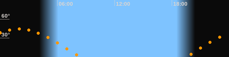 | Aufgang | 19:26 Uhr im Osten (αAz = 81°) |