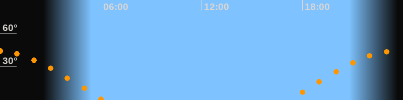 | Aufgang | 17:10 Uhr im Osten (αAz = 81°) |