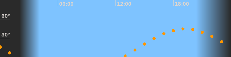 | Aufgang | 12:44 Uhr im Osten (αAz = 81°) |
