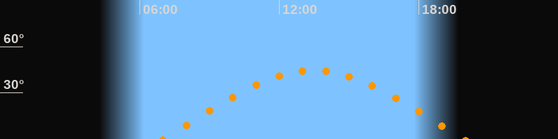 | Höchster Stand (Kulmination) | 13:28 Uhr (h = 44,5°) |