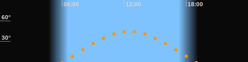 | Höchster Stand (Kulmination) | 12:29 Uhr (h = 44,5°) |