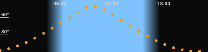 | Höchster Stand (Kulmination) | 10:43 Uhr (h = 79,7°) |
