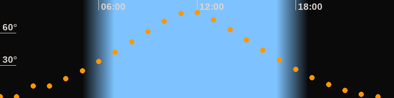 | Höchster Stand (Kulmination) | 11:35 Uhr (h = 79,7°) |