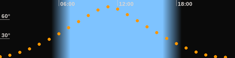 | Höchster Stand (Kulmination) | 11:04 Uhr (h = 79,7°) |