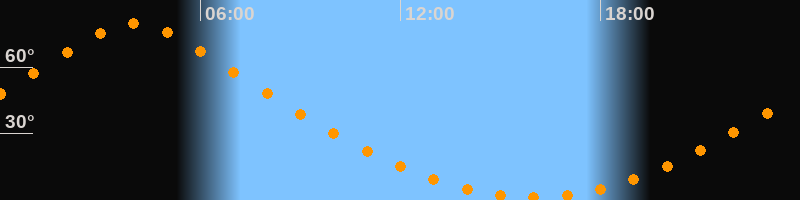 | Höchster Stand (Kulmination) | 04:01 Uhr (h = 79,7°) |