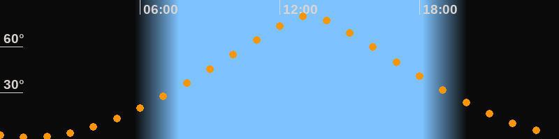 | Höchster Stand (Kulmination) | 13:14 Uhr (h = 79,7°) |