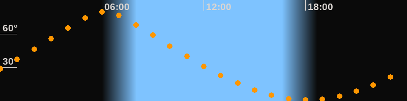 | Höchster Stand (Kulmination) | 06:08 Uhr (h = 79,7°) |