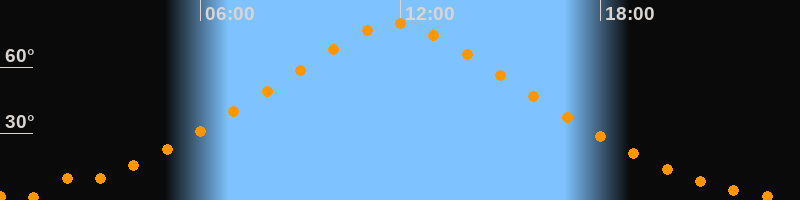 | Höchster Stand (Kulmination) | 11:51 Uhr (h = 79,7°) |