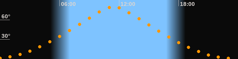 | Höchster Stand (Kulmination) | 11:26 Uhr (h = 79,7°) |