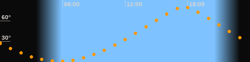 | Höchster Stand (Kulmination) | 17:39 Uhr (h = 79,7°) |
