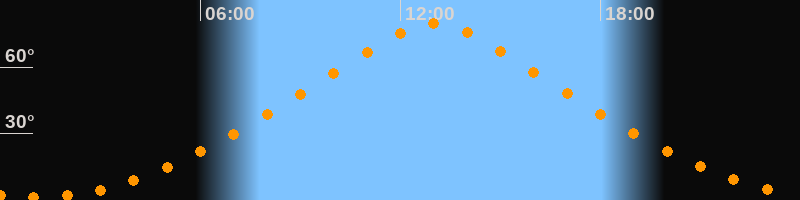 | Höchster Stand (Kulmination) | 13:01 Uhr (h = 79,7°) |