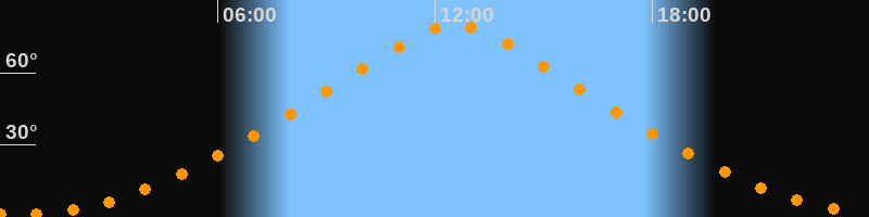| Höchster Stand (Kulmination) | 12:33 Uhr (h = 79,7°) |