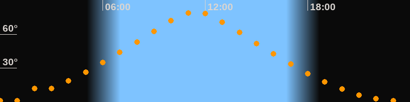 | Höchster Stand (Kulmination) | 11:25 Uhr (h = 79,7°) |