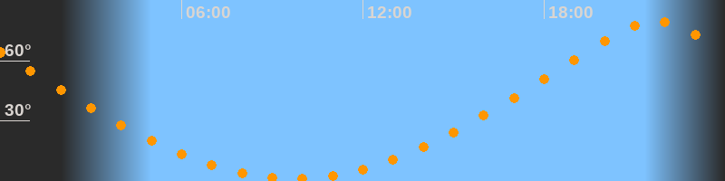 | Höchster Stand (Kulmination) | 21:41 Uhr (h = 79,7°) |
