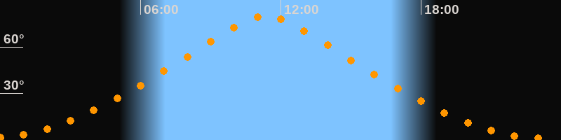 | Höchster Stand (Kulmination) | 11:22 Uhr (h = 79,7°) |