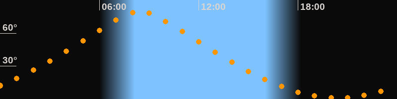 | Höchster Stand (Kulmination) | 08:25 Uhr (h = 79,7°) |