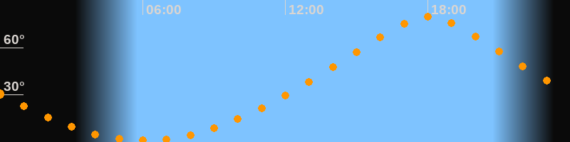 | Höchster Stand (Kulmination) | 18:02 Uhr (h = 79,7°) |