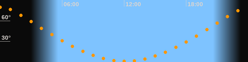 | Höchster Stand (Kulmination) | 00:04 Uhr (h = 79,7°) |
