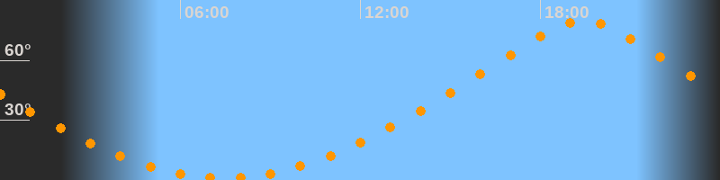 | Höchster Stand (Kulmination) | 19:26 Uhr (h = 79,7°) |