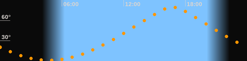 | Höchster Stand (Kulmination) | 16:45 Uhr (h = 79,7°) |