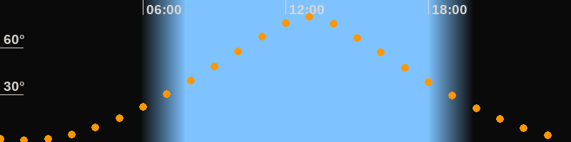 | Höchster Stand (Kulmination) | 12:57 Uhr (h = 79,7°) |