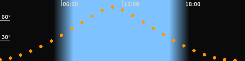 | Höchster Stand (Kulmination) | 11:02 Uhr (h = 79,7°) |