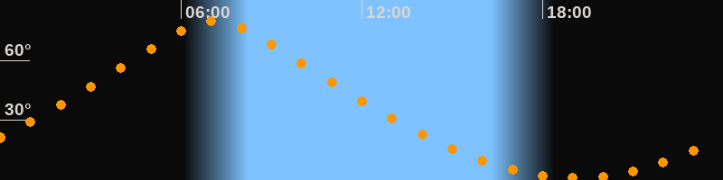| Höchster Stand (Kulmination) | 07:06 Uhr (h = 79,7°) |