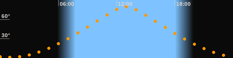 | Höchster Stand (Kulmination) | 12:58 Uhr (h = 79,7°) |