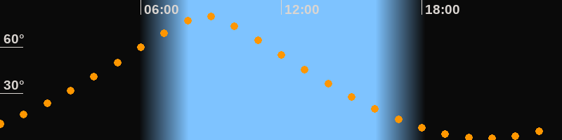 | Höchster Stand (Kulmination) | 08:45 Uhr (h = 79,7°) |