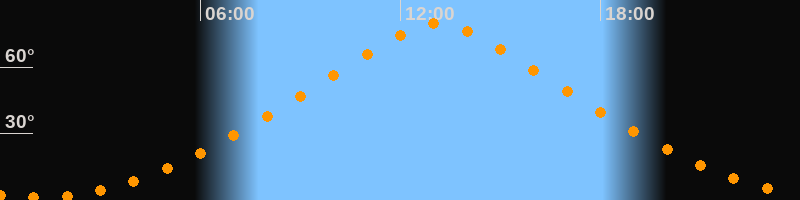 | Höchster Stand (Kulmination) | 13:06 Uhr (h = 79,7°) |