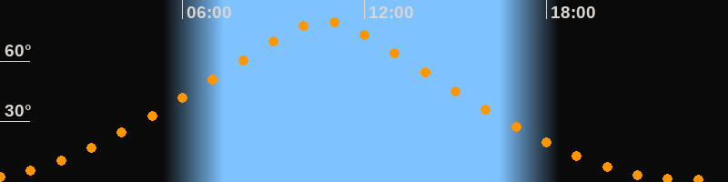 | Höchster Stand (Kulmination) | 10:40 Uhr (h = 79,7°) |