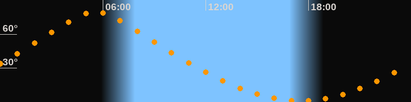 | Höchster Stand (Kulmination) | 05:33 Uhr (h = 79,7°) |