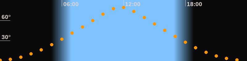 | Höchster Stand (Kulmination) | 11:43 Uhr (h = 79,7°) |