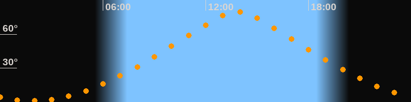 | Höchster Stand (Kulmination) | 13:51 Uhr (h = 79,7°) |