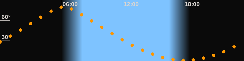 | Höchster Stand (Kulmination) | 06:11 Uhr (h = 79,7°) |