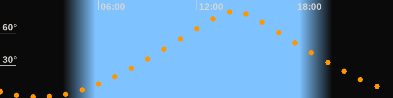 | Höchster Stand (Kulmination) | 14:19 Uhr (h = 79,7°) |
