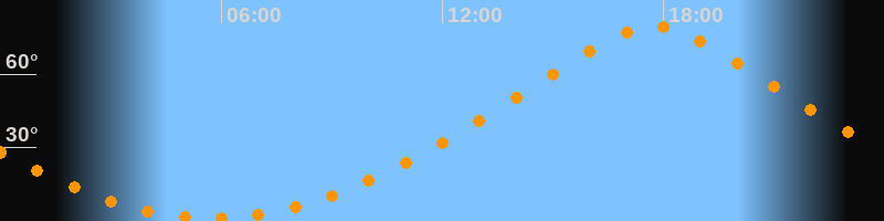 | Höchster Stand (Kulmination) | 17:44 Uhr (h = 79,7°) |