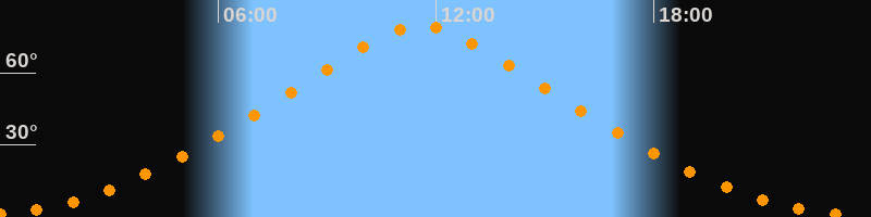 | Höchster Stand (Kulmination) | 11:35 Uhr (h = 79,7°) |
