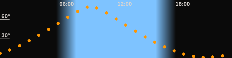 | Höchster Stand (Kulmination) | 09:21 Uhr (h = 79,7°) |