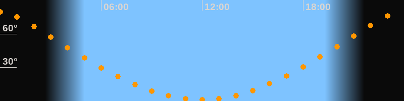 | Höchster Stand (Kulmination) | 23:55 Uhr (h = 79,7°) |
