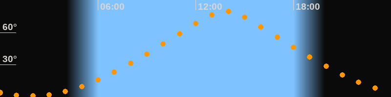 | Höchster Stand (Kulmination) | 13:49 Uhr (h = 79,7°) |