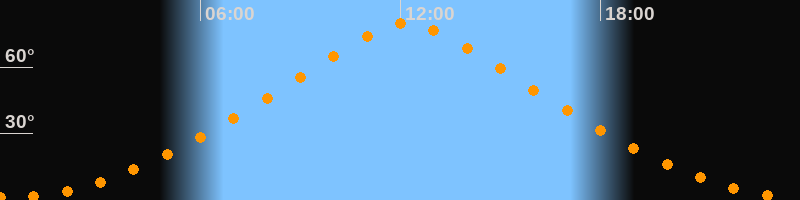 | Höchster Stand (Kulmination) | 12:11 Uhr (h = 79,7°) |