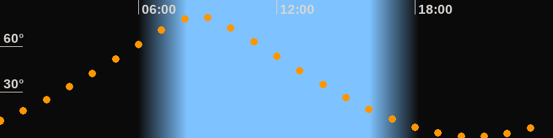 | Höchster Stand (Kulmination) | 08:35 Uhr (h = 79,7°) |