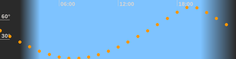| Höchster Stand (Kulmination) | 19:28 Uhr (h = 79,7°) |