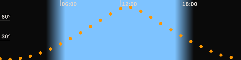 | Höchster Stand (Kulmination) | 12:43 Uhr (h = 79,7°) |